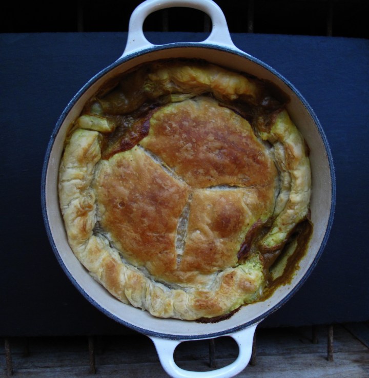 I tried a similar curry pie at an Irish pub a few months back that invoked fond memories of my months in the Eire–summer months that were cool enough to invoke a heavily-spiced dish such as curry. Add to that the fact that I was eating at that particular pub on the cool Oregon coast–when you are as likely to chance an outstandingly lovely day in February as you are in July.