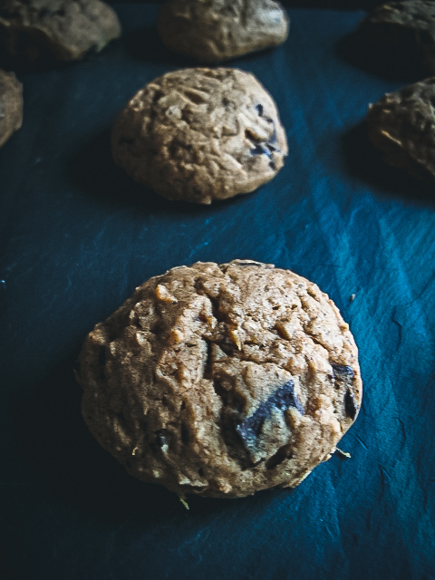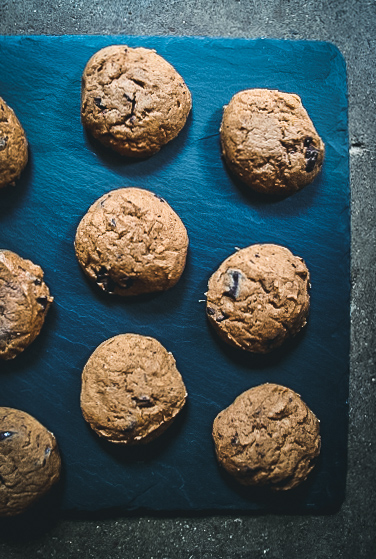 Weeks ago now, I know, but as I was leaving my parent’s house the week before Thanksgiving, I was encouraged to take two perfect little pie pumpkins. I intended to use them for a pumpkin pie. That week got busy, however, and I pulled out a can instead. Now, a couple weeks later and already full force into the Christmas season, I am busy pumpkin-ing up meals on a regular basis. Pumpkin pie, pumpkin ice cream, pumpkin spice lattes, pumpkin oatmeal, rosemary roasted pumpkin seeds, pumpkin risotto, the list goes on. What I’d really been meaning to re-vamp for months now are amazing pumpkin chocolate chip cookies. They are gluten and dairy-free and even better than the original recipe (less cakey, more cookie-y). Perfect to share for holiday festivities. Or just to warm and comfort on a cold December day!