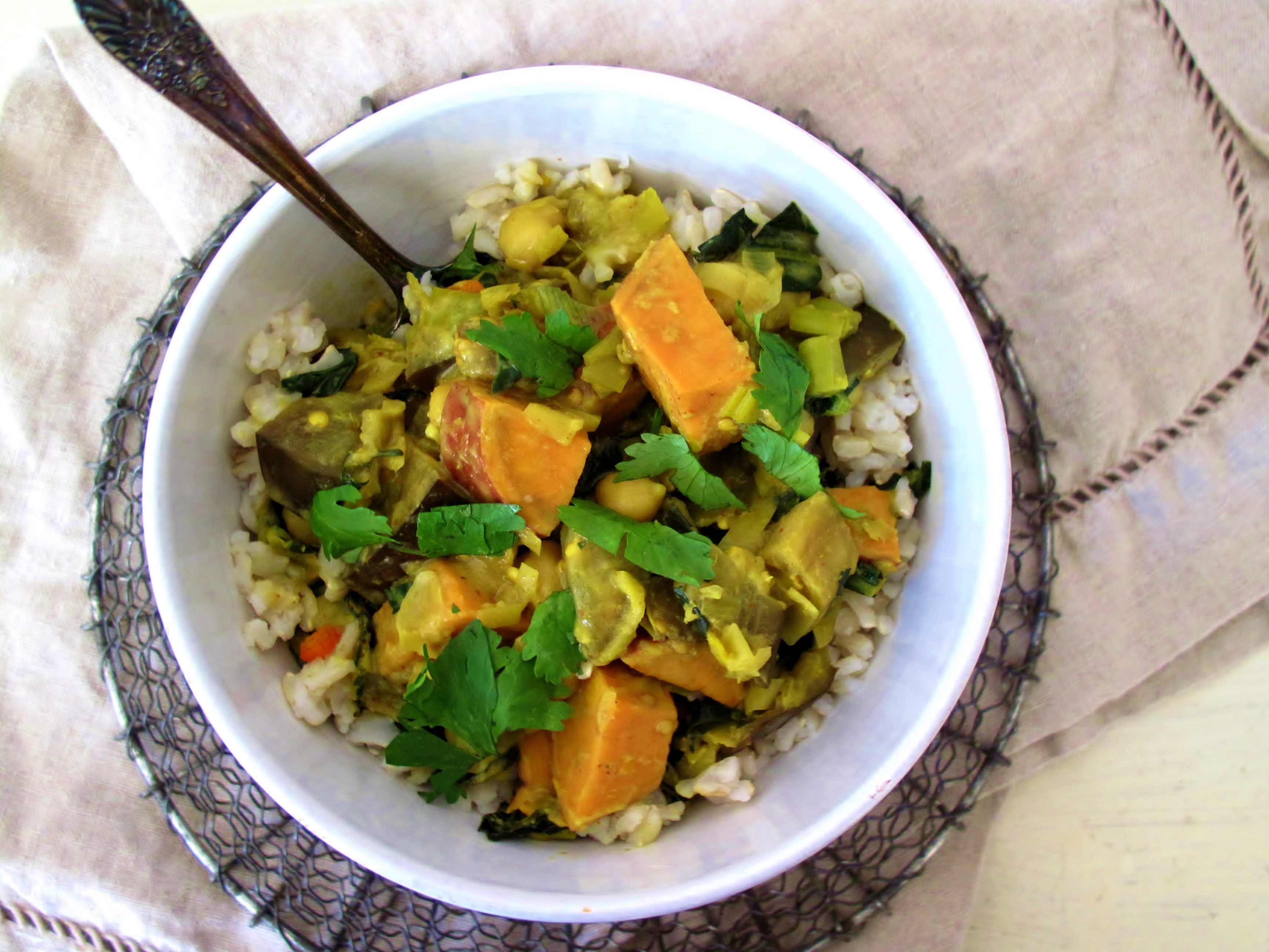 Eggplant + Sweet Potato Curry with Coconut Milk