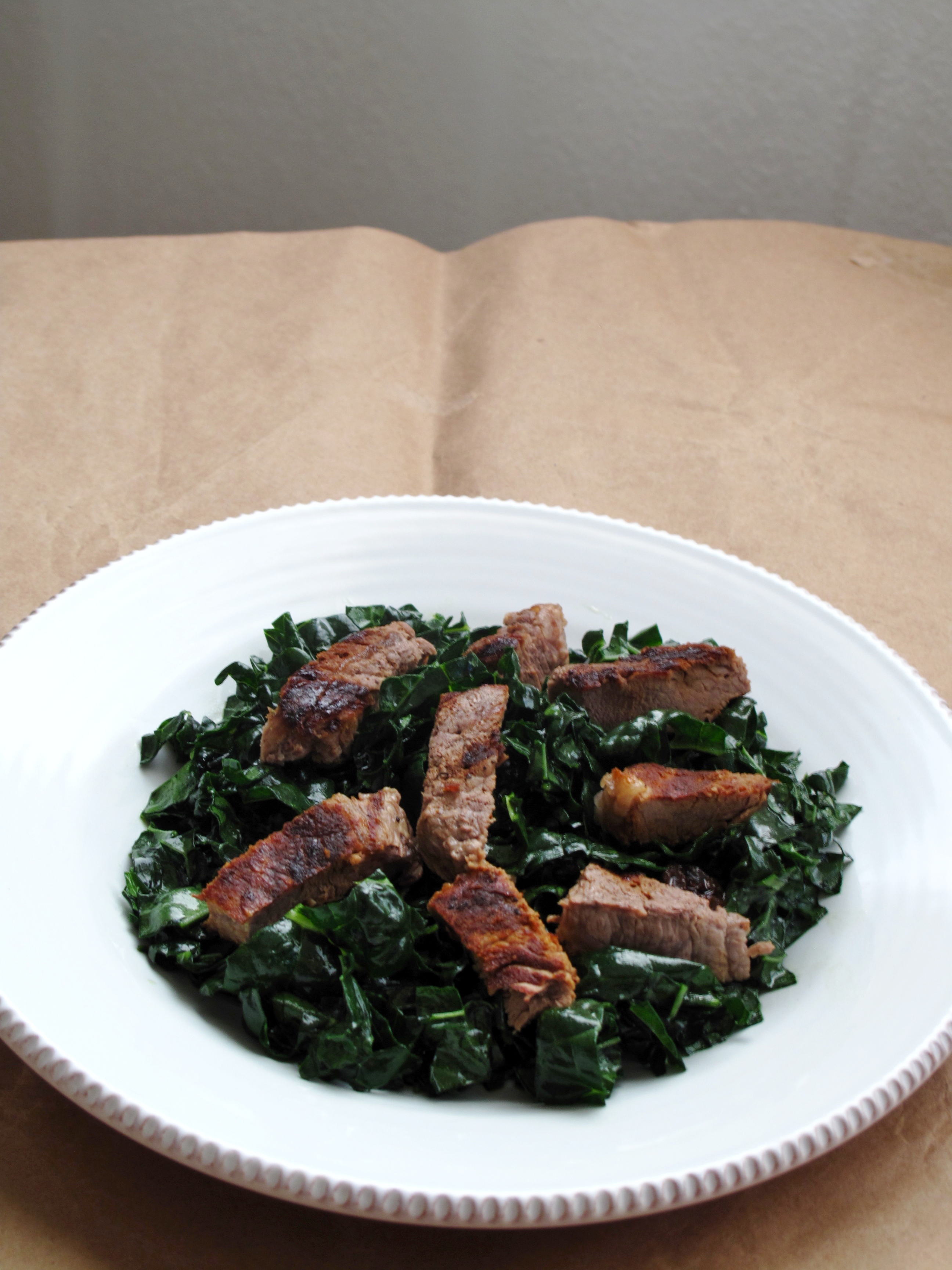 - Dish kale onto plates, and add steak to the top. Toss with caramelized onions, if using and serve.