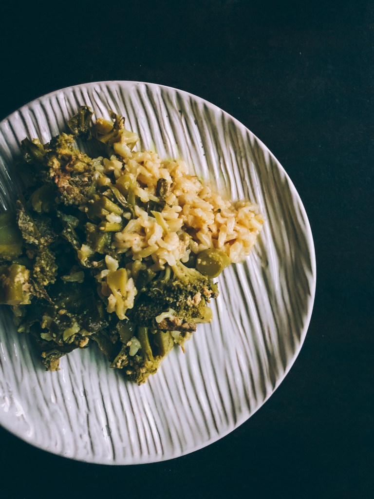 Then I stumbled upon the flavor/spice combination below while having a little creative session in the kitchen earlier this year. Without intending to, the result ended up being exactly what I was going for in the failed recipe revamp. And here we have it! A whole foods remake of the Broccoli Rice Casserole I loved from youth.