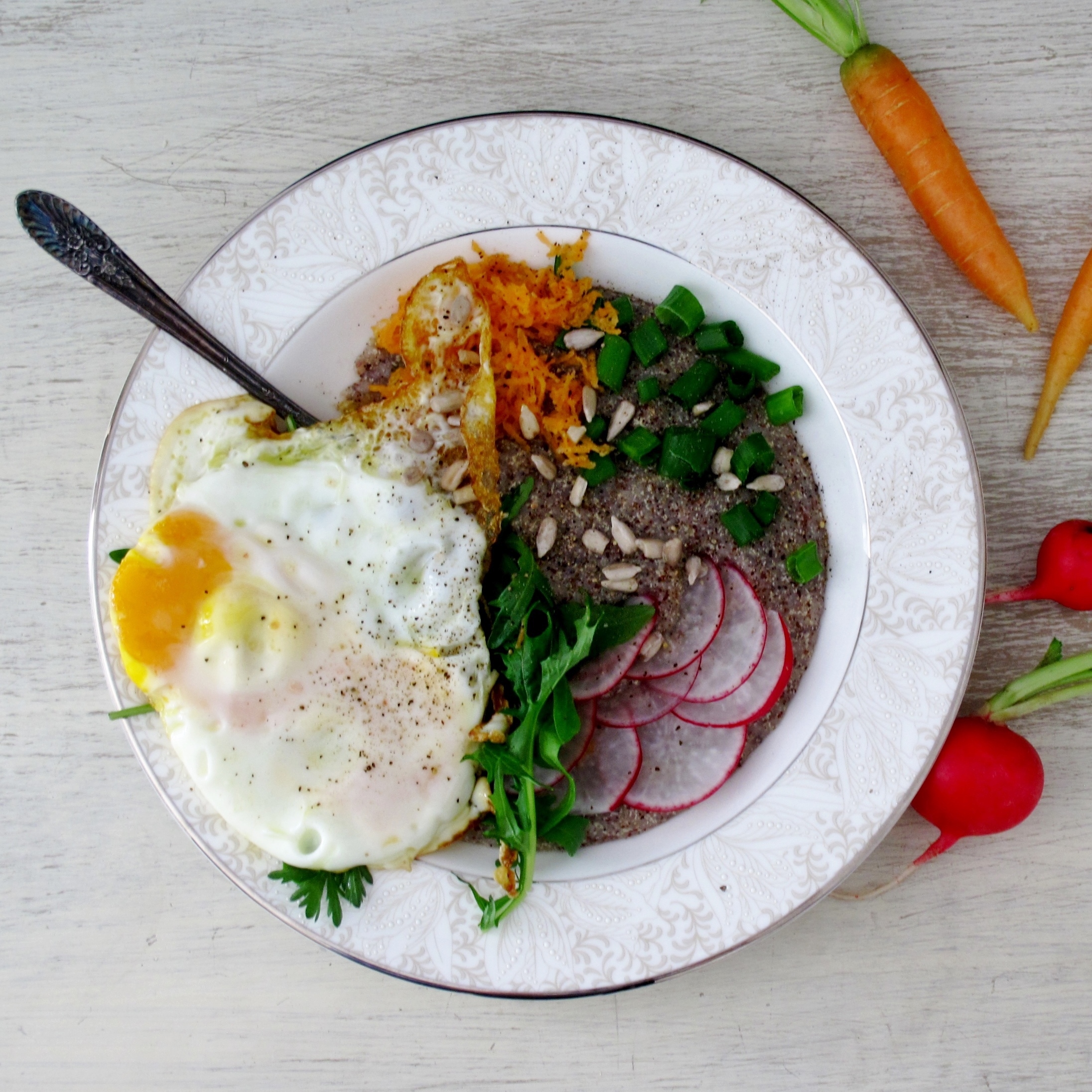 This polenta dish features raab, which can also be called rabe and rapini. If you google it, you might read that it is a unique variety related to broccoli; this is not necessarily the case to the farmers and gardeners I know. At this time in the season, all of last year’s brassica crops that have overwintered are finally telling us their time has come, the weather and light are changing, and instead of continuing to produce nice big leaves, they’re putting their energy into flowering and eventually setting seeds. So all the local farmers are selling the last of what these plants are offering as kale, sprouting broccoli, arugula, and mustard raabs. They are tasty, nutritious, and have cute little broccoli-like florets. We are currently in the three-four week window where these plants are available and they’re likely to be found from a farmer or perhaps a grocery store which sources directly from farmers.