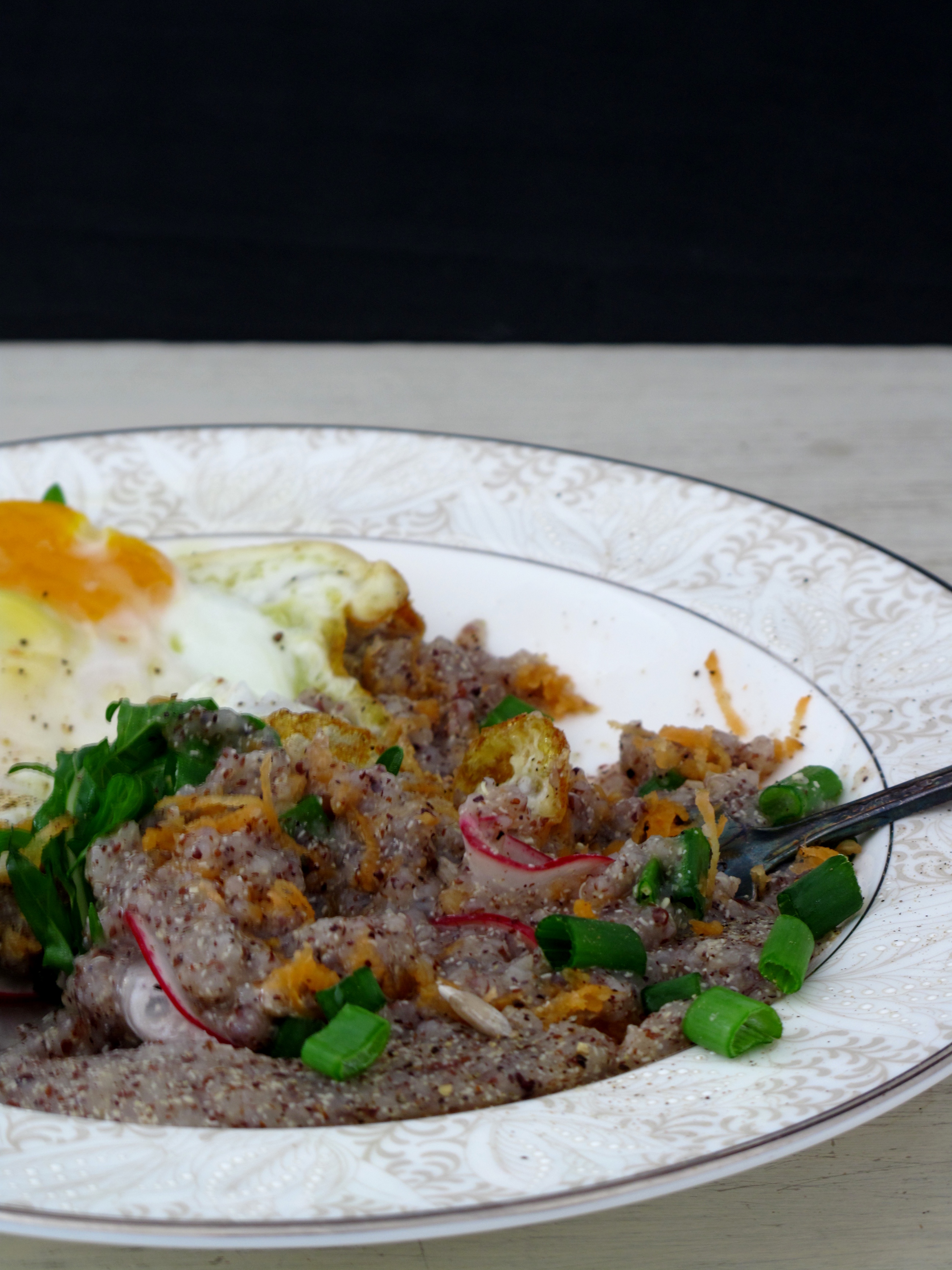 Secondly, I used Abenaki corn polenta in this recipe, which comes from a local farmer specializing in grains and legumes. Abenaki is a heritage corn and is quite beautiful when ground, with its speckling of red and gold pieces.