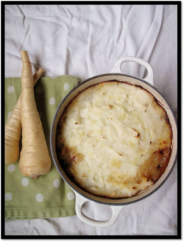 - Preheat oven to 425 degrees F. Make the topping: Bring potatoes and parsnip to a boil in a medium pot, covered with water. Cook until tender, about 20 minutes. Drain, reserving 1 cup of potato liquid. Mash the potatoes and parsnips and stir in the yogurt or milk along with about 1/4 teaspoon salt. Season with pepper.