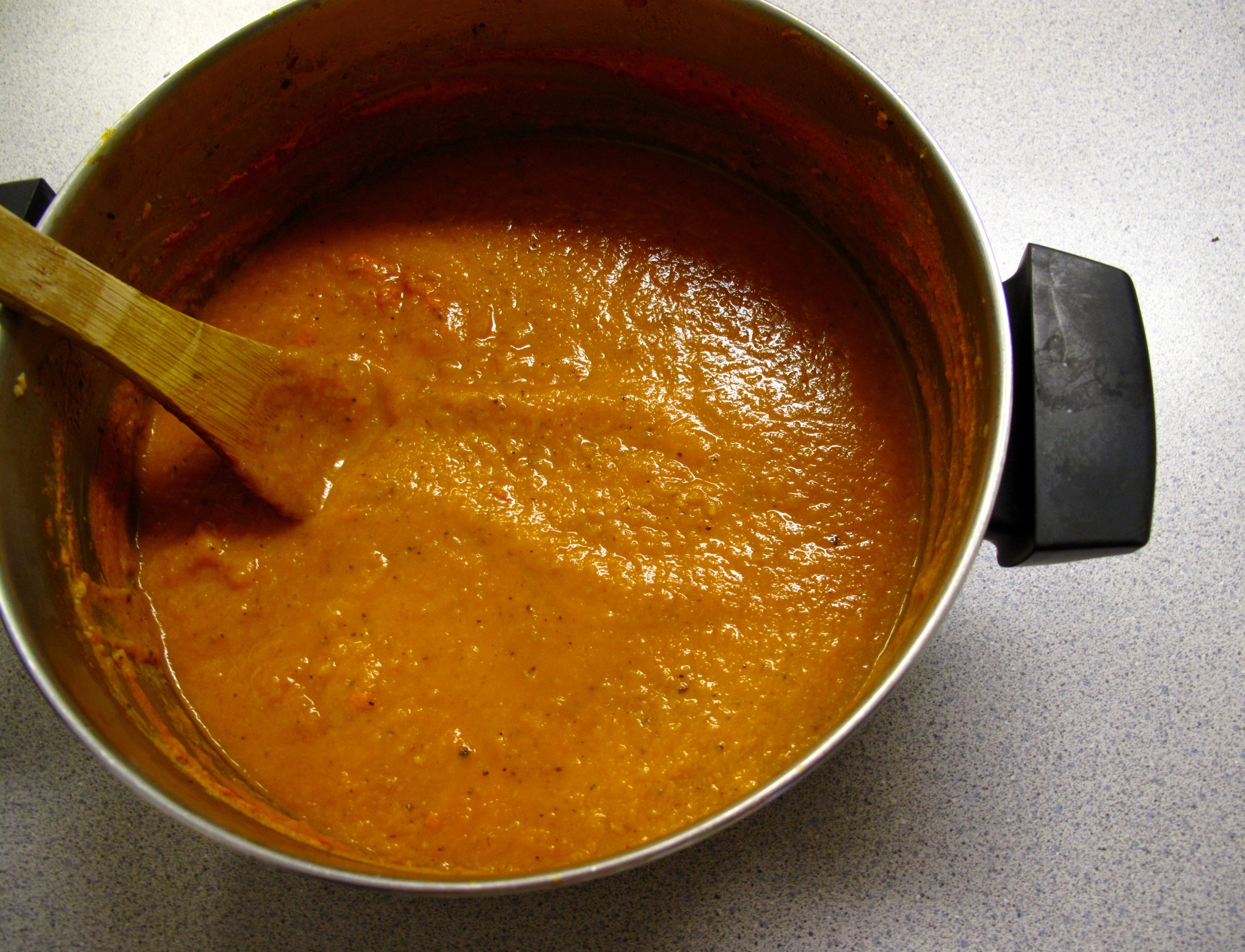 - Transfer squash mixture to a blender and blend in batches until smooth. Return to the pot and bring back up to a low simmer.